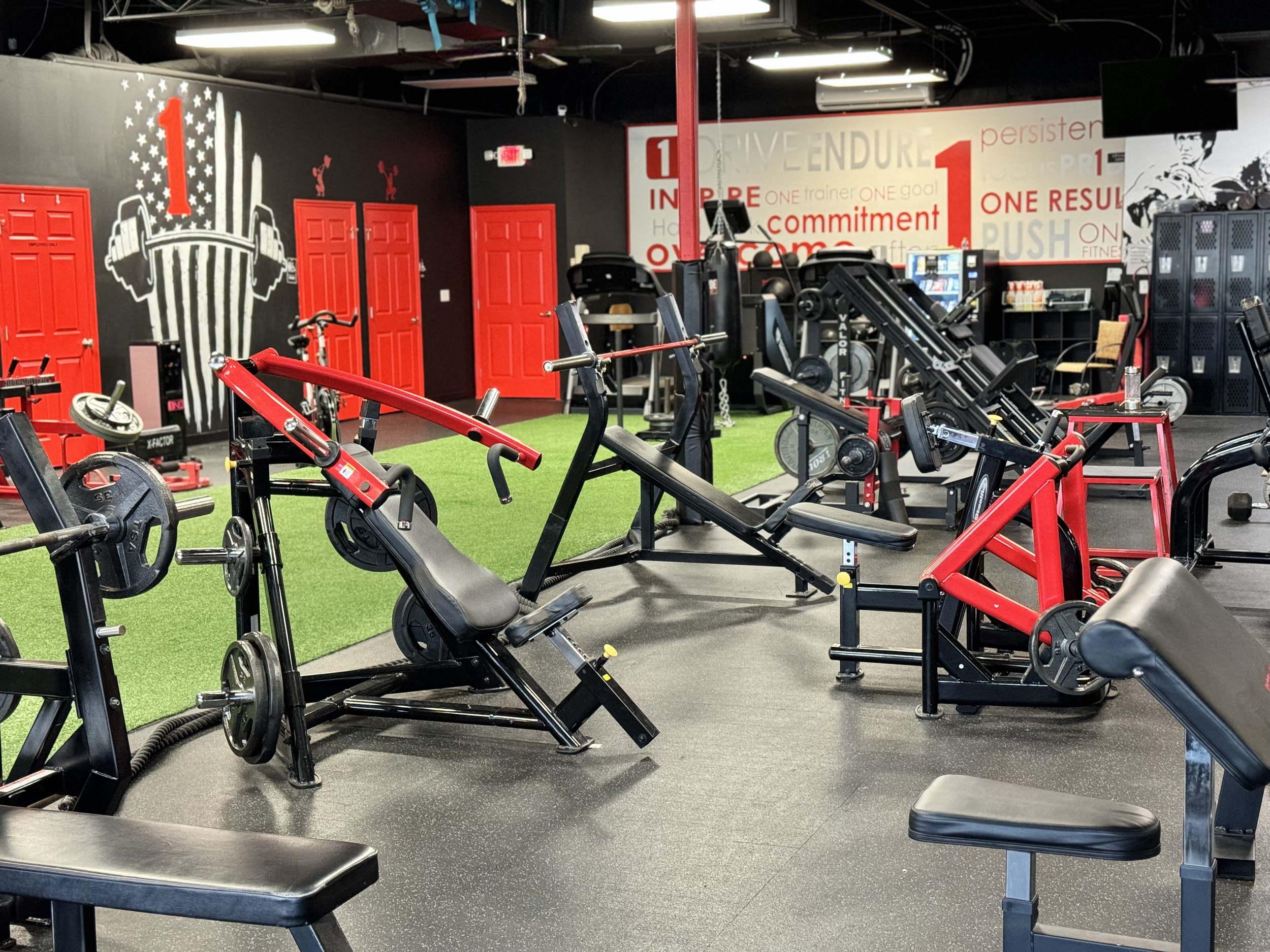 1Fitness is a high energy, family friendly, 24 hr gym which offers personal training, group training, sport specific training, and brand new equipment.